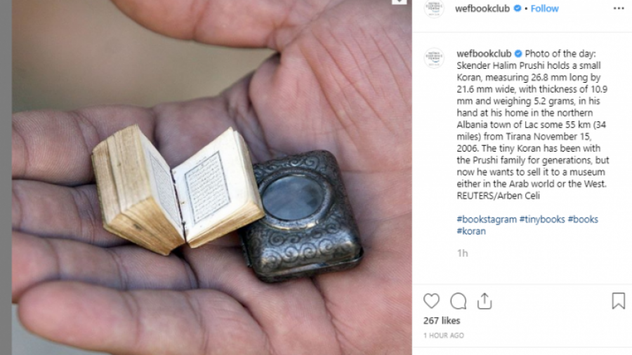 Faqja e njohur “Wetbookclub” ka publikuar sot si foton e saj të ditës, një imazh ku shfaqet një Kuran shumë i vogël i mbajtur nga një familje shqiptare.