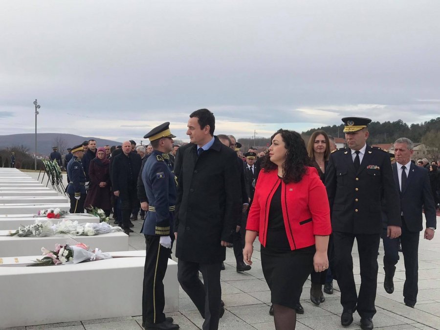 Kryeministri Albin Kurti dhe kryetarja e Kuvendit, Vjosa Osmani, kanë bërë homazhe në kompleksin Adem Jashari në Prekaz, me rastin e 22-vjetorit të Epopesë së UÇK-së.