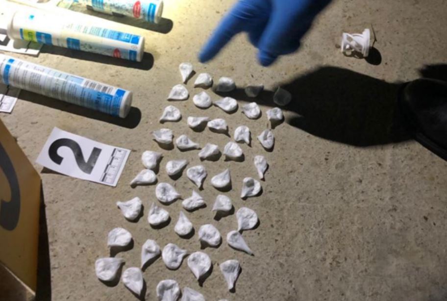 Në gilinderat e oborrit janë gjetur të kapur me magnet, një paketim i plastikes që shërben për paketimin e vitaminave me mbishkrimin “Ca + vit C”, brenda të cilit kishte katër (4) doza të mbushura me substancë në formë pluhuri ngjyrë e bardhë që dyshohet të jetë narkotik i llojit kokainë.