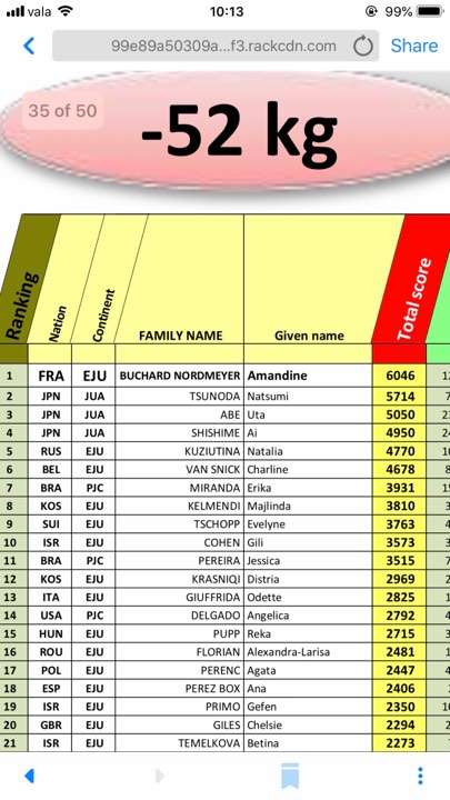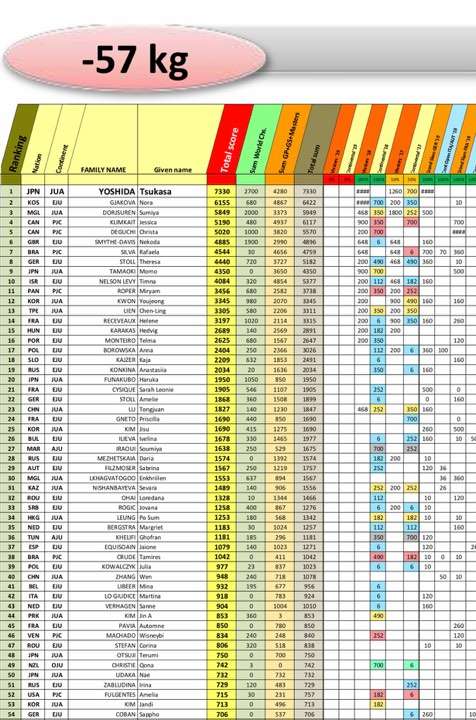 Ndërsa, Nora Gjakova në këtë ranglistë të re renditet në pozitën e dytë në kategorinë -57 kilogramë, me 6155 pikë.