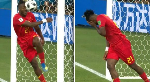 Pas golit të shqiptarit, Adnan Januzaj, që realizoi në minutën e 51, nga gëzimi, Batshuayi e goditi topin edhe njëherë, por e pësoi keq pasi shtylla bëri që t’i përplaset në fytyrë.