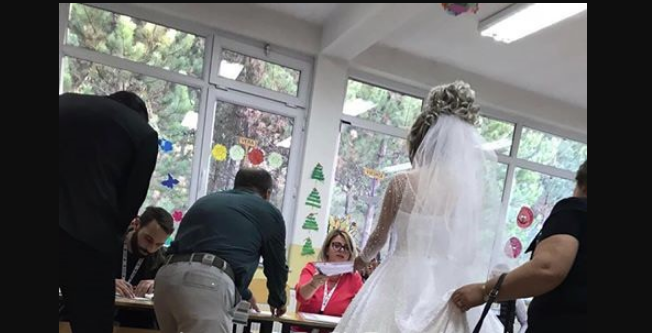 Këtë e dëshmon edhe një fotografi e arritur në adresë të Klan Kosovës, ku bëhet e ditur që kjo nuse votoi në fshatin Grashticë të Prishtinës, ndërsa dhe po mbante ceremoninë e martesës së saj.