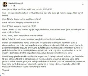 “Një mes i artë prej 85.00 eurosh duhet të hapte rrugën e bashkëbisedimit të mëpastajm mes palëve dhe arsyetimit të vlerave tjera.” – ka thënë afaristi, që kishte qenë edhe deputet.