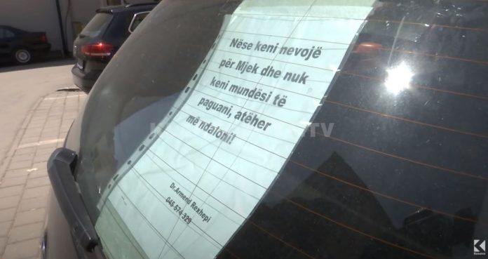 “Nëse keni nevojë për jek dhe nuk keni mundësi të paguani, atëherë më ndaloni”, këtë thirrje në formë të shkruar e ka vendosur në veturën e tij, mjeku nga Vitia, Armend Rexhepi, i cili jeton në Gjilan.