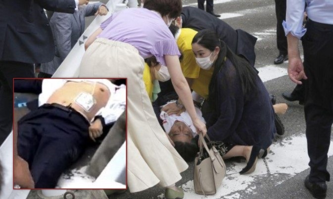 Abe, 67 vjeç, u rrëzua i gjakosur në qafë dhe kraharor, tha një burim nga Partia e tij Liberale Demokratike në pushtet për agjencinë e lajmeve Jiji.