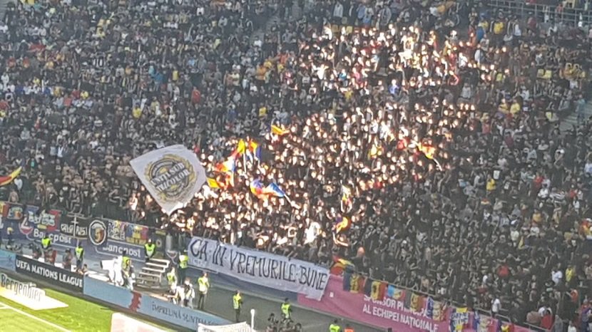 Gjithashtu, tifozët rumunë kanë ngritur një flamur ku shkruante “Ashtu si në kohët e vjetra”.