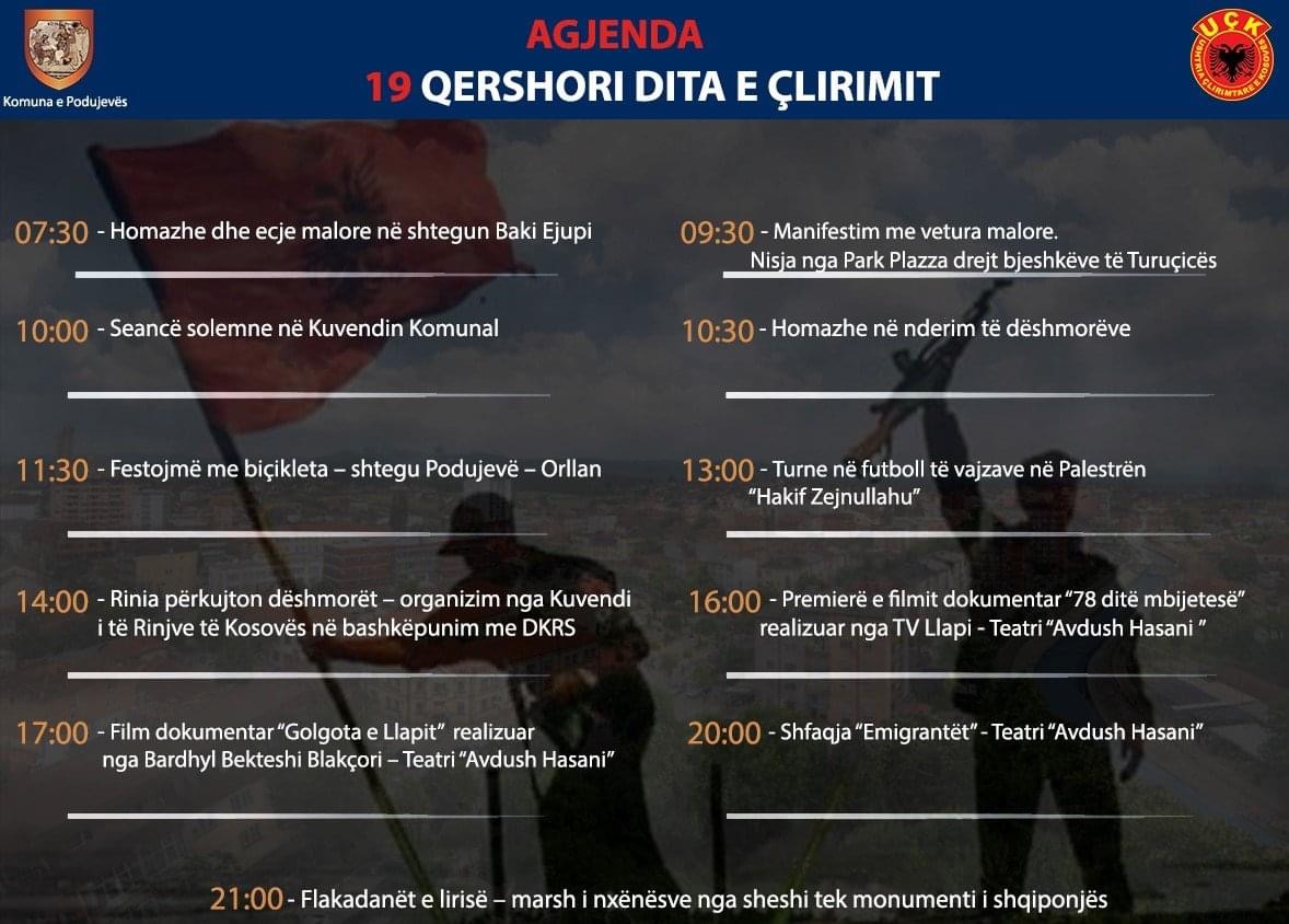 Në nderim të kësaj dite, do të zhvillohen shumë aktivitete që organizohen nga Komuna e Podujevës.