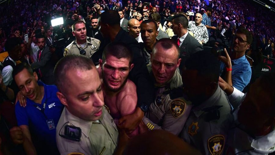 Vetëm disa sekonda pasi Khabib detyroi irlandezin që të dorëzohej, rusi kaloi kafazin dhe u drejtua te njëri nga anëtarët e stafit të McGregor duke nisur një përleshje, transmeton tch.