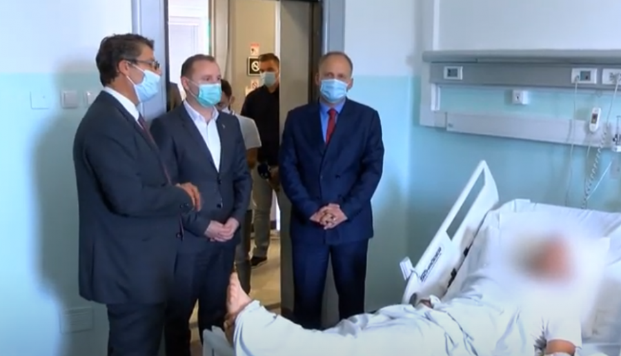 Pa e respektuar fare distancën, ministri i Shëndetësisë, Armend Zemaj, e u.d. i drejtorit të SHSKUK-së, Valbon Krasniqi, kanë vizituar pacientët në Klinikën Torokale.