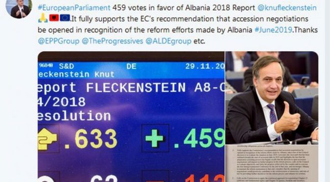 Lajmi është bërë i ditur nga kreu i grupit parlamentar të Partisë Socialiste, Taulant Balla. Përmes një postimi në Twitter, Balla tha se raporti në fjalë është hartuar nga eurodeputeti Kunt Fleckenstein.