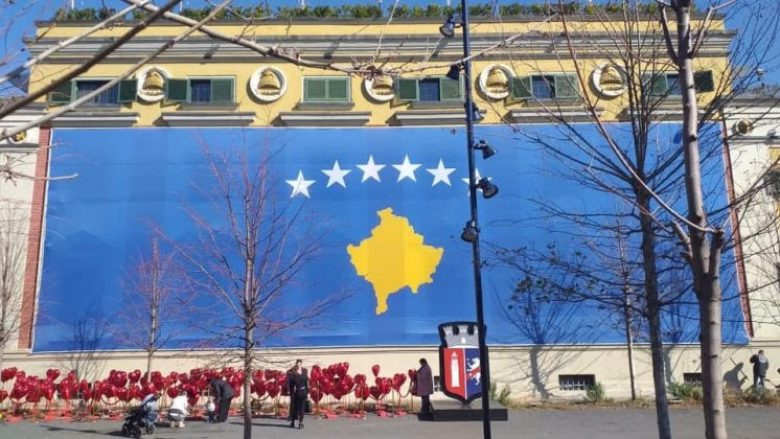 Me rastin e 12-vjetorit të shpalljes së Pavarësisë së Kosovës, një flamur gjigant i Kosovës është vendosur në njërën pjesë të bashkisë së Tiranës.