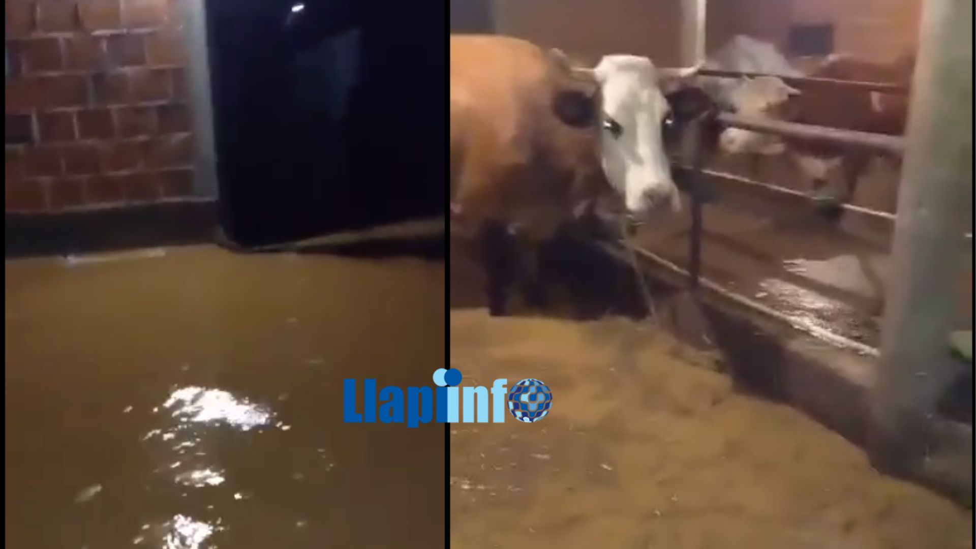 Në pamjet që ka siguruar Llapi.info, shihet se uji ka depërtuar nëpër shtëpi, stalla dhe oborre.