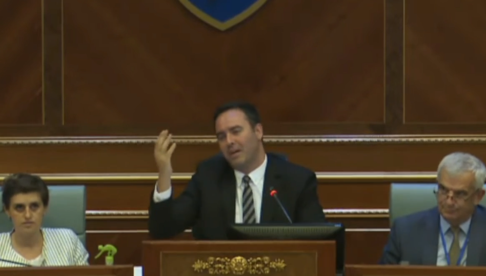 “Nëse nuk kalon as ligji tjetër, a e ndërprejmë seancën, s’ka kuptim kështu, çfarë Trusti, votoni për projektligje, s’ka Trust, çfarë trusti. Pe ndërkrejmë vëlla edhe ditën e mirë, mos boni hajgare kshtu. Edhe këtë projektligj edhe shkojmë ka shpija ecim”.