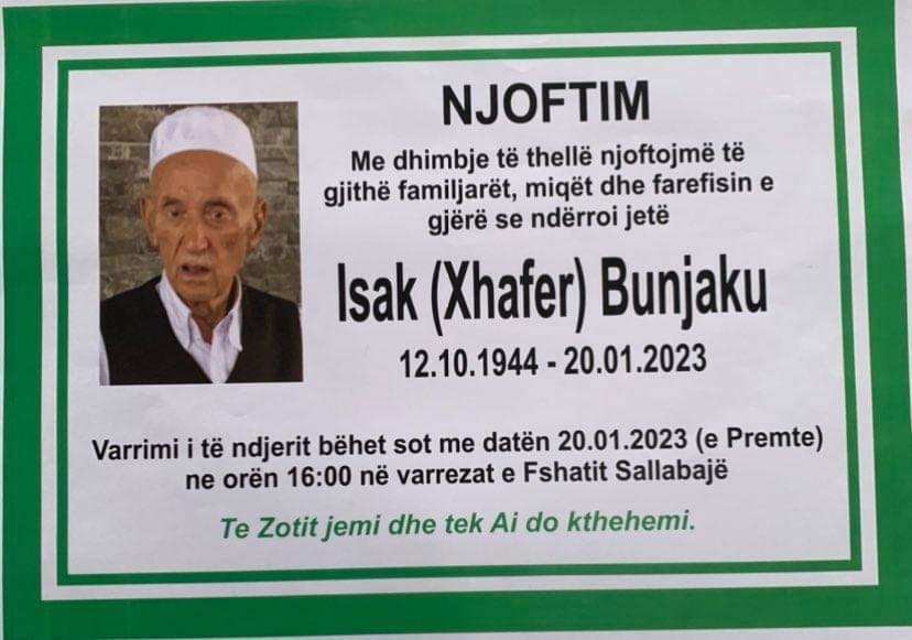 Ka ndërruar jetë Isak Bunjaku nga Podujeva, shkruan Llapi.info.