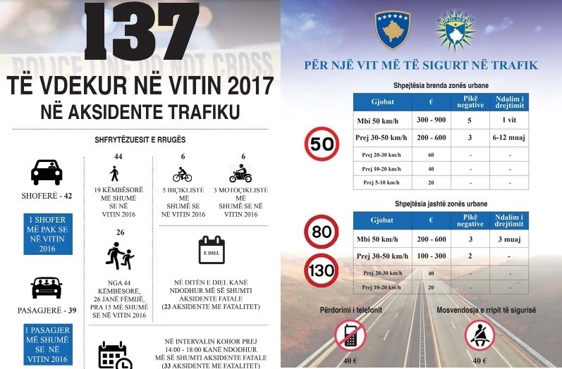 Policia e Kosovës ka bërë të ditur se me qëllim të sensibilizimit të pjesëmarrësve në trafikun rrugor, qoftë ata vendor, bashkatdhetarët dhe të huajt që hyjnë dhe qarkullojnë nëpër rrugët e Kosovës, do të filloj shpërndarja e broshurave sipas projektit “Për një vit më të sigurt në trafik”.