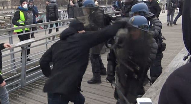 Sulmuesi është identifikuar si ish kampioni i boksit, Christophe Dettinger dhe 36-vjeçari u filmua ndërsa kapte në grushte një nga oficerët e policisë në urën Leopold-Sédar-Senghor.