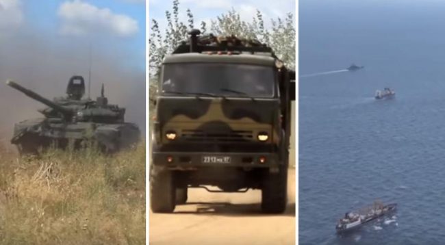 Video gjithashtu ka treguar automjete ushtarake, avionë, helikopterë dhe anije gati për të filluar stërvitjet që përfshijnë forcat ushtarake kineze dhe mongoliane, të cilat NATO i quajti një probabilitet për një konflikt me rrezik të lartë.