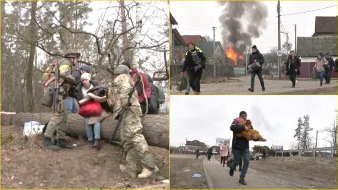 Më herët ishte raportuar se civilë të shumtë po largoheshin nga qyteti Irpin, në veri-perëndim të Kievit, për t’i shpëtuar bombardimeve të tmerrshme ruse.
