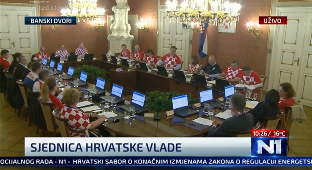 Ministrat e Qeverisë së Kroacisë, në krye me kryeministrin Andrej Plenkoviq, kanë ardhur sot në mbledhje të veshur me fanella të kombëtares së Kroacisë.