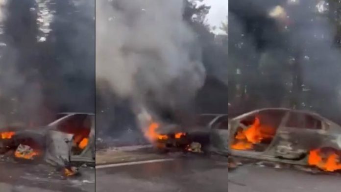 Nga pamjet shihet teksa zjarri ka djegur thuajse totalisht automjetin.