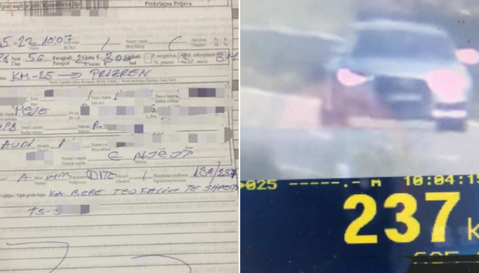Një shofer është gjobitur pasi ka vozitur në shpejtësi prej 237 km/h.