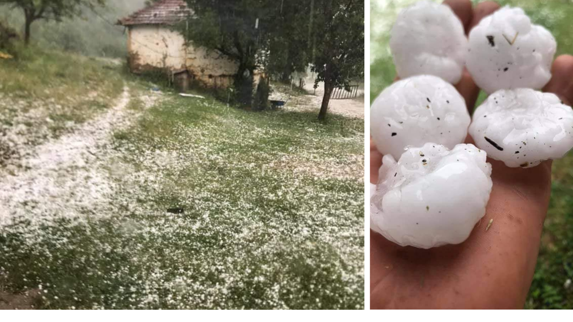 Në fshatin Sllatinë, sipas pamjeve që kanë publikuar qytetarët, shihet se është zbardhuar nga breshëri. Në fotografi shihet edhe madhësia e kokrrave të breshërit.