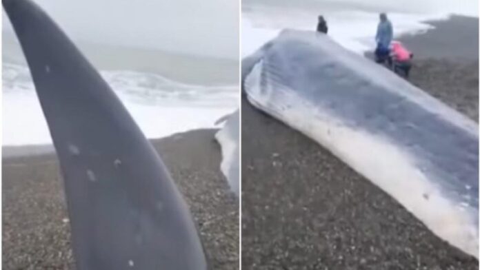 Një stuhi e fuqishme ka nxjerr në rërën e një plazhi në Kamchatka të Rusisë, një balenë 19 metra të gjatë.