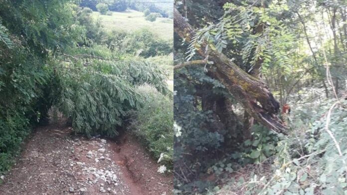 Përderisa në disa pjesë uji ka vërshuar duke depërtuar edhe nëpër shtëpi, erërat e fuqishme kanë këputur pemët.