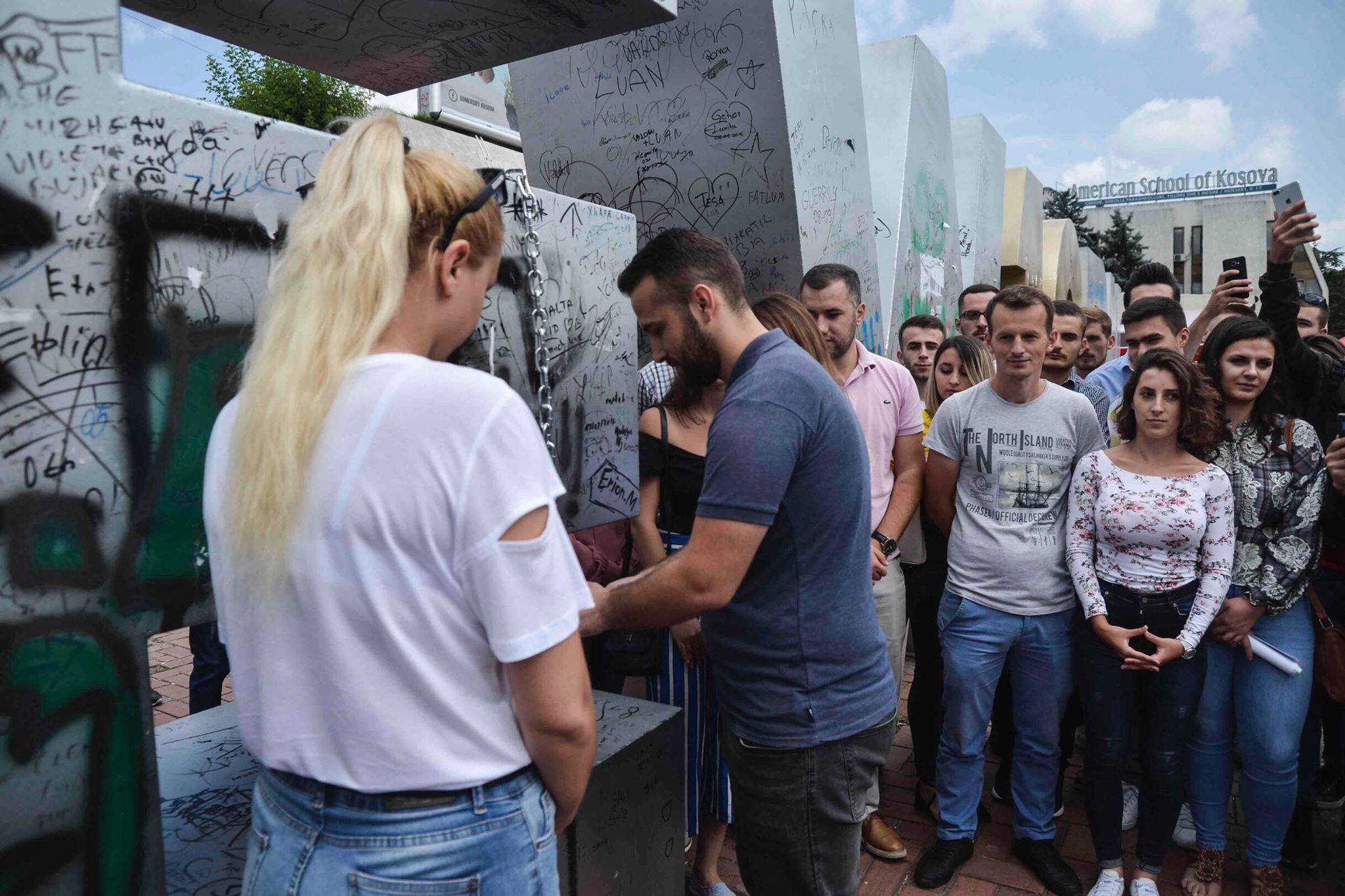Aksioni simbolik u zhvillua te NEWBORN, ku shkronjës E, që simbolizonte në këtë rast Europën, iu hoq zingjiri, me të cilin ishte rrethuar, nga të rinjtë e PDK-së për të kërkuar lirinë e lëvizjes për qytetarët e Kosovës dhe largimin e padrejtë të izolimit që ekziston ndaj tyre.