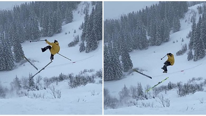 Videoja e publikuar më poshtë shfaq të riun duke skijuar dhe gjithçka dukej se po shkon për mrekulli – megjithatë në një moment ai tentoi të bëjë një rrotullim në ajër që për pak sa nuk i kushtoi me jetë.