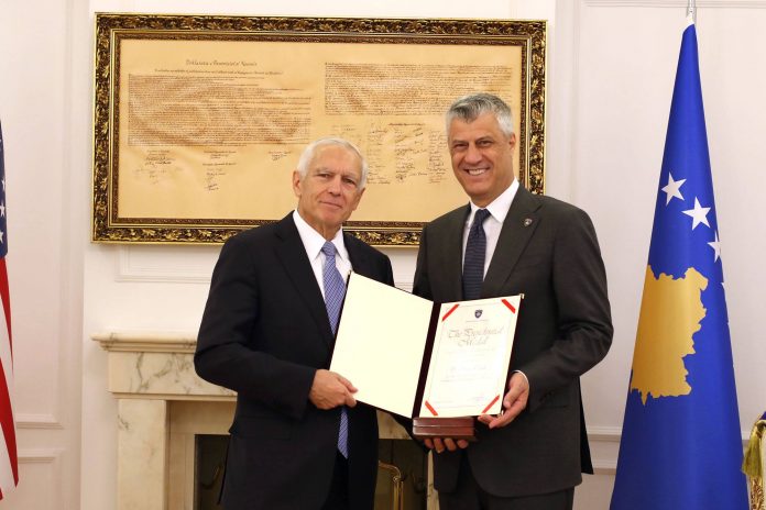 Presidenti i vendit, Hashim Thaçi, ka dekoruar me Medaljen Presidenciale Jubilare, Gjeneralin amerikan Wesley Clark, i cili drejtoi sulmet ajrore të NATO-s në vitin 1999.