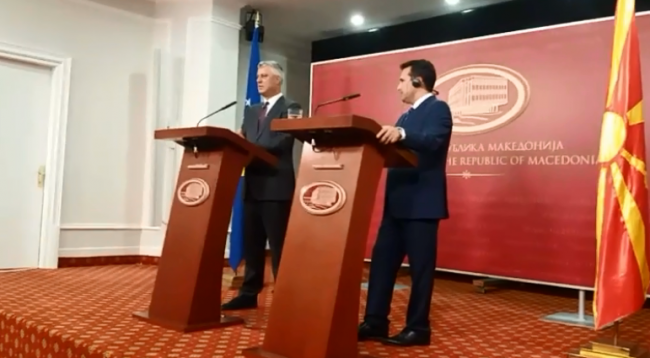 Thaçi i ka thënë Zaevit se nuk do të bëhet asnjë marrëveshje që i cenon miqtë tanë, as Maqedoninë, as Shqipërinë, as Malin e Zi dhe asnjë vend tjetër, por do jetë një marrëveshje e koordinuar në plotni, ashtu siç po koordinohet edhe Maqedonia me Bashkimin Evropian, Shtetet e Bashkuara të Amerikës dhe të gjithë miqtë dhe partnerët tanë ndërkombëtarë.