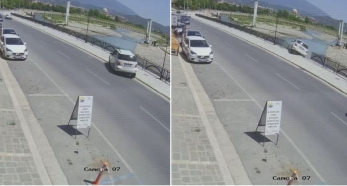 Mediat shqiptare tashmë kanë publikuar edhe pamjet nga momenti kur vetura ka devijuar rrugën dhe nënë e birë kanë rënë në lumë.