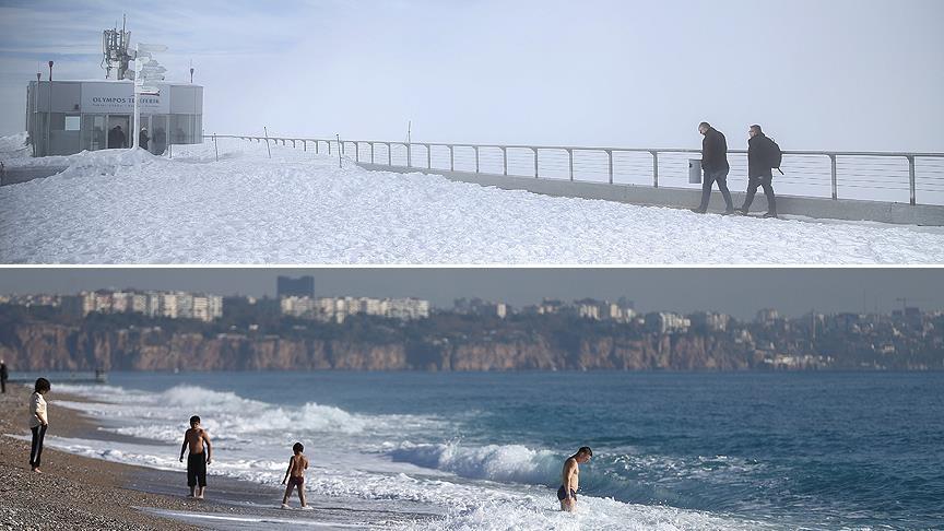 Plazhi i njohur Konyaalti, perla e Antalisë, edhe në muajt e fundit të vitit tërheq turistë të huaj duan të shijojnë rrezet e diellit dhe detin në dhjetor. Në të njëjtën kohë, në malin Tahtali, 2,365 metra i lartë dhe rreth një orë larg, vizitorët kanë mundësi të shijojnë edhe borën.