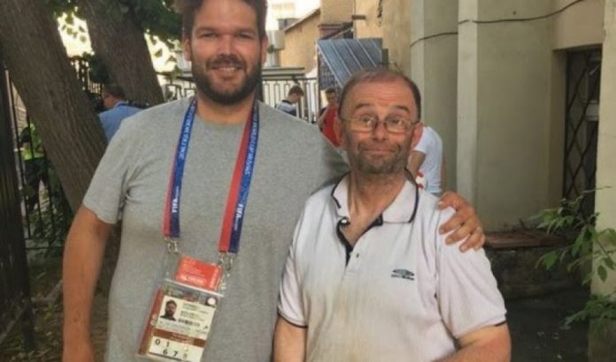 “Ky është Dagllas. Ai ishte te hoteli ynë në Volgograd. Sapo e takuam edhe në Nizhni, dhe kuptoi se kishte harruar biletën në shtëpi, në Bristol. Nëse dikush ka një biletë tepër, më njoftoni”, shkroi Houells në Twitter.