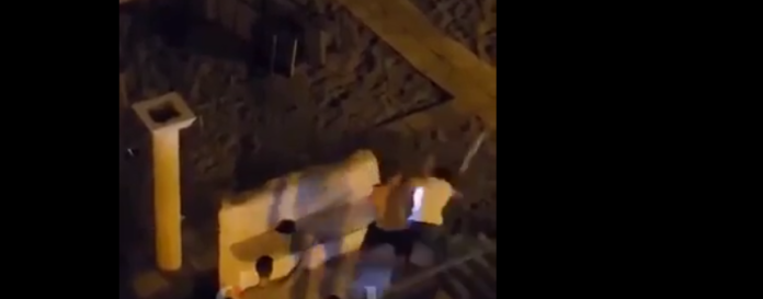 Derisa njëri goditet me shkop, nis të vetëmbrohet, por më pas situata fillon të agravojë dhe fillojnë të dy të goditen me grushte.