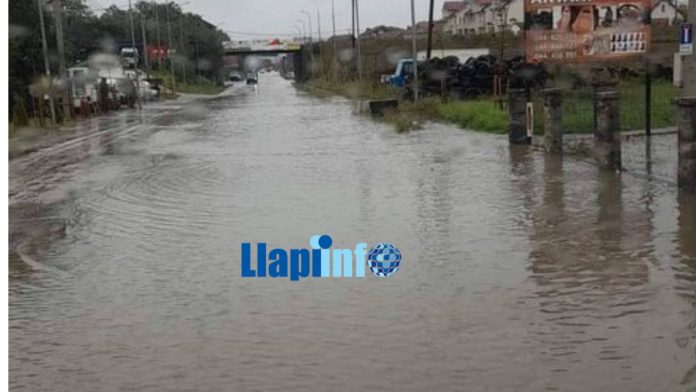 Në pamjet që ka siguruar Llapi.info, shihet se kilometri i parë i rrugës magjistrale Merdar – Podujevës, është i tëri nën ujë.