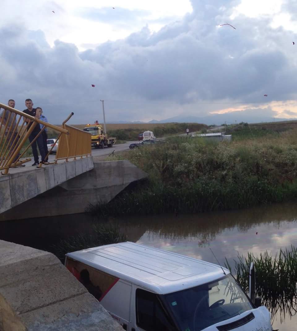 Në bazë të një foto të dërguar nga lexuesit e portalit shihet se një furgon ka rënë në përrockë.