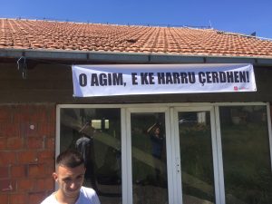‘O Agim e ke harru çerdhen’ ishte motoja të cilën Vetëvendosje e vendosi sot në çerdhen e cila edhe pse u ndërtua nuk u funksionalizua tashme e 16 vite.